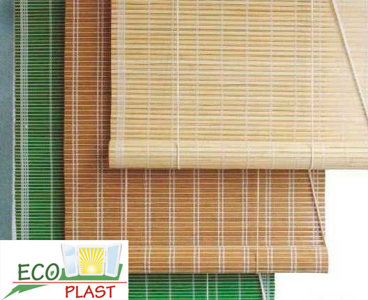 Они прекрасно противостоят воздействию прямых солнечных лучей, не выцветая, что гарантирует специальный светостойкий лак. Бамбуковые жалюзи плетутся вручную и на специальных станках с помощью различных способов плетения, в зависимости от чего, они бывают либо плотными, либо ажурными. Они изготовлены из отборных стеблей бамбука и соломки, которые отличаются по цветовой гамме и фактуре. Полосы соединены между собой специальными декоративными нитями. Что примечательно, полоски в некоторых особых изделиях выбираются разного диаметра и окрашиваются в различные цвета. Главное преимущество бамбуковых жалюзи- их невысокая цена.